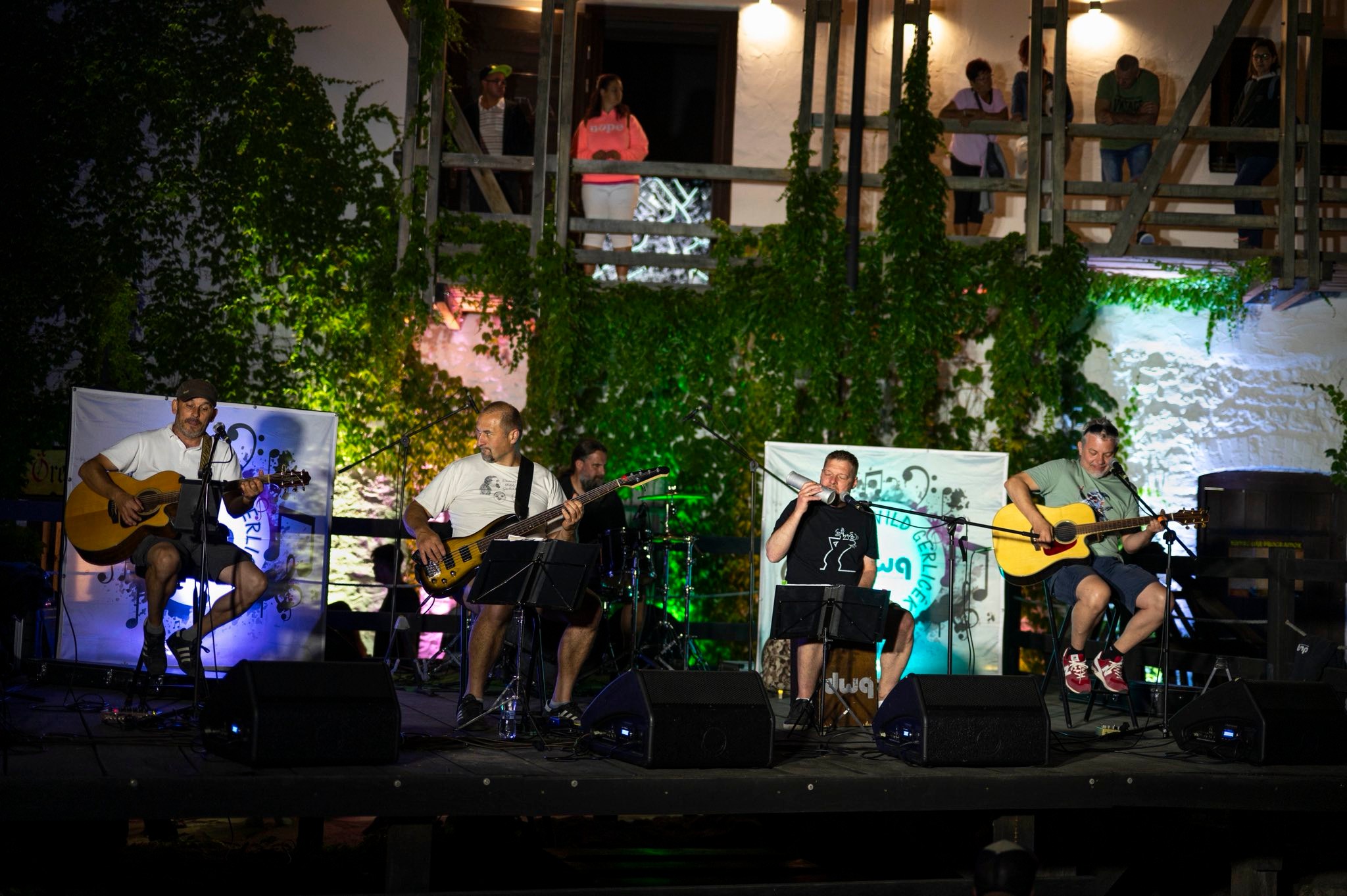 A zenekarunk neve: Deresedő Wild Gerlicék. Dob, két gitár, basszusgitár és ének felállásban zenélünk, a zenekar fennállása óta akusztikus formában. A teljes bemutatkozáshoz vissza kell mennünk időben egészen 1994-ig, amikor is négy tizenéves barát elhatározta, hogy zenekart alapít. Ez a zenekar Entalpia névre hallgatott és kezdetekben punk, majd később metál zenére váltott. Ez a metál zenekar húsz évig működött. (Az utolsó fellépésünk 2015-ben volt.) Időközben, 2011-ben elhatároztuk, hogy egy mellékvágányon elkezdünk akusztikus gitárokkal (leváltva a torzított gitárokat) magyar zenekarok dalait feldolgozni, hogy kis kocsmákban elő lehessen ezeket adni. Tagcsere egyedül a basszusgitár poszton történt, a többiek maradtak az új felállásban is. A zenekar neve Deresedő Wild Gerlicék lett, röviden DWG. A Veszprém vármegyei Sümeg a székhelyünk, minden tagunk innen származik. Az első koncert óta (ami 2011.06.17-én volt egy helyi kocsmában) töretlen lelkesedéssel és lendülettel muzsikálunk és adjuk tovább az élő zene szeretetét. Ezt a munkásságunkat 2018-ban Sümeg Városért Emlékplakettel köszönte meg Sümeg város Önkormányzata, amire nagyon büszkék vagyunk. Az eltelt idő alatt több mint 400 alkalommal léphettünk kisebb-nagyobb színpadra. A fő irány még mindig a feldolgozások, de az elkészült két lemezünkre (2020, illetve 2021-es kiadás) már egy, illetve kettő saját szerzemény is felkerült. Az első lemezen egy sümegi kamarazenekar is segítséget nyújtott 3 nótában, akikkel később több koncertet is adtunk közösen.