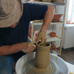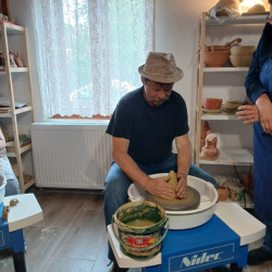 Apáti Zoltán vagyok, Sümegprágán élek családommal. Műhelyemben olyan fazekas termékeket készítek, amelyek őrzik a hagyományokat, de igyekszem megfelelni a modern kor elvárásainak is. Étkészleteket, bögréket, főzőedényeket, tálakat készítek egyéni megrendelésre is. Konyhai csempék és kályha csempék is gyártásra kerülnek kézműves műhelyünkben. Különböző tüzelőberendezések – cserépkályha, kandalló - , valamint kemence építésével is foglalkozom, a tervezéstől egészen a kivitelezésig. Kézműves foglalkozásainkon gyerekektől felnőttekig, minden korosztály elmélyülhet a fazekasság rejtelmeiben. Kiscsoportos foglalkozásokat is tartunk műhelyünkben 4-8 főig. Természetesen szívesen gazdagítjuk különböző rendezvények programját foglalkozásainkkal, vásárral. Szívesen vállalunk iskolákban, vagy más közösségekben fazekas foglalkozást, kézműves bemutatót.