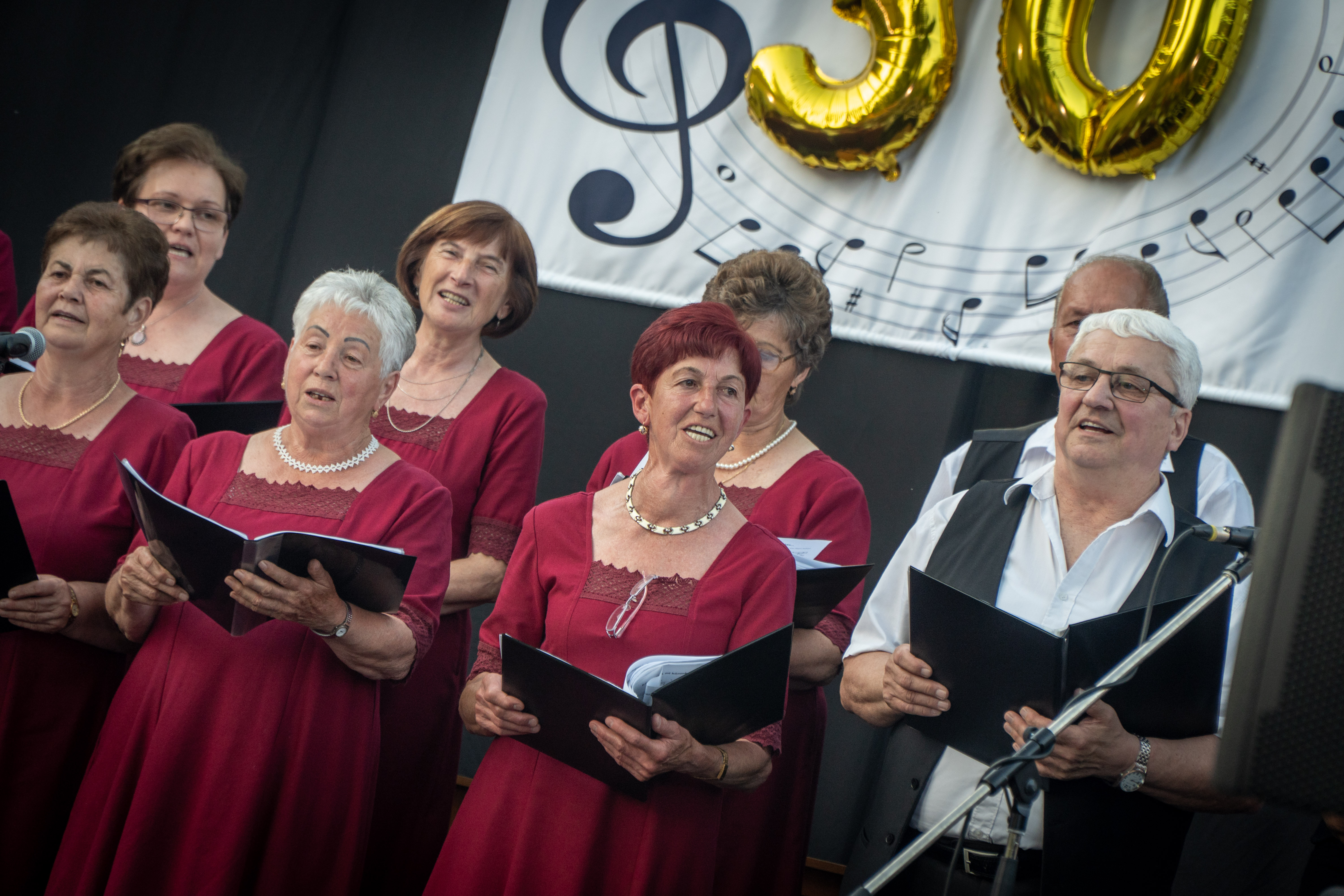 Repertoárjukban szerepelnek: népdalok, egyházi énekek, operett, kuplé és retro-slágerek is. Különböző alkalmakra vannak tematikusan összeállított műsorok (pl: idősek napja, advent). Szívesen vállalnak fellépést falunapokon, egyházi, állami ünnepeken, egyéb közösségi rendezvényeken. Műsoridő: 25 perc. Létszám: 23 fő